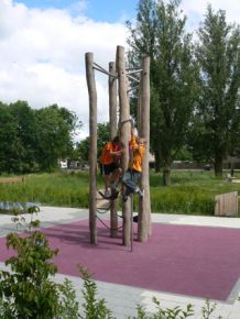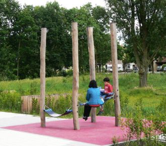 ‘de speelslinger is tussen bestaande bomen geplaatst’