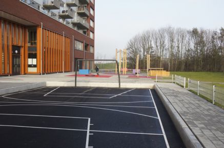 Buurt speelterrein met sport- en speelvoorzieningen en flaneerstrook met...